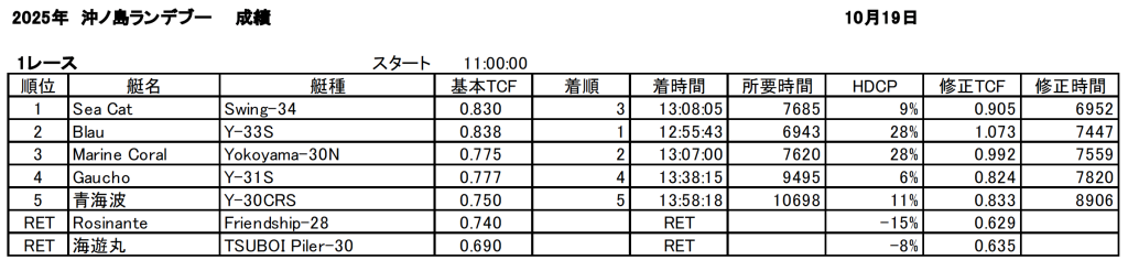| コース | 沖ノ島回航 約11.5nm(別途コース図の通り) | |